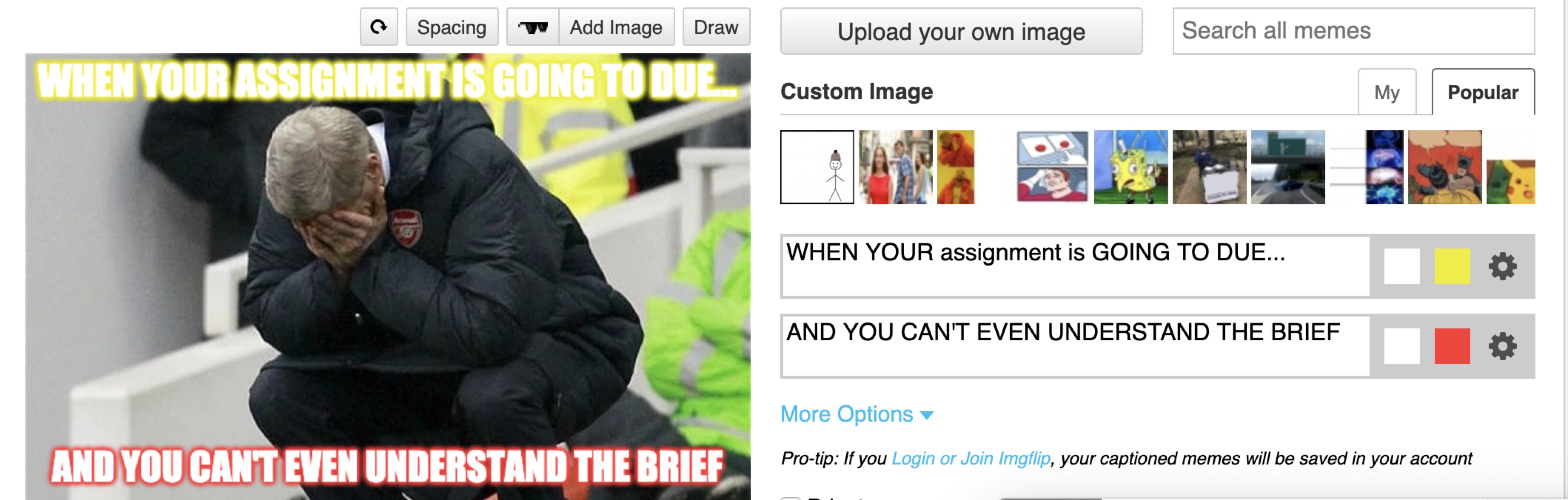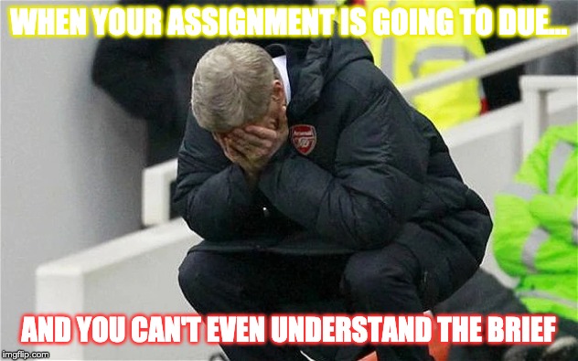 And the text ” WHEN YOUR ASSESSMENT IS GOIN G TO DUE…” highlighted by bright yellow colour and text ” AND YOU CAN’T EVEN UNDERSTAND THE BRIEF” highlighted by red colour compliment the figure and the “last minute ” situation.