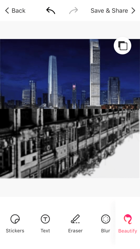 To show this emotion, I put to picture next to each other and make the picture of “Qi Lou” upside down and turn it into black and white.( In Chinese tradition, black and white pictures refer to death or something that is no more or gone) Last but not least, I make it blurry because the memory of “Qi Lou” is kind of fading through time.